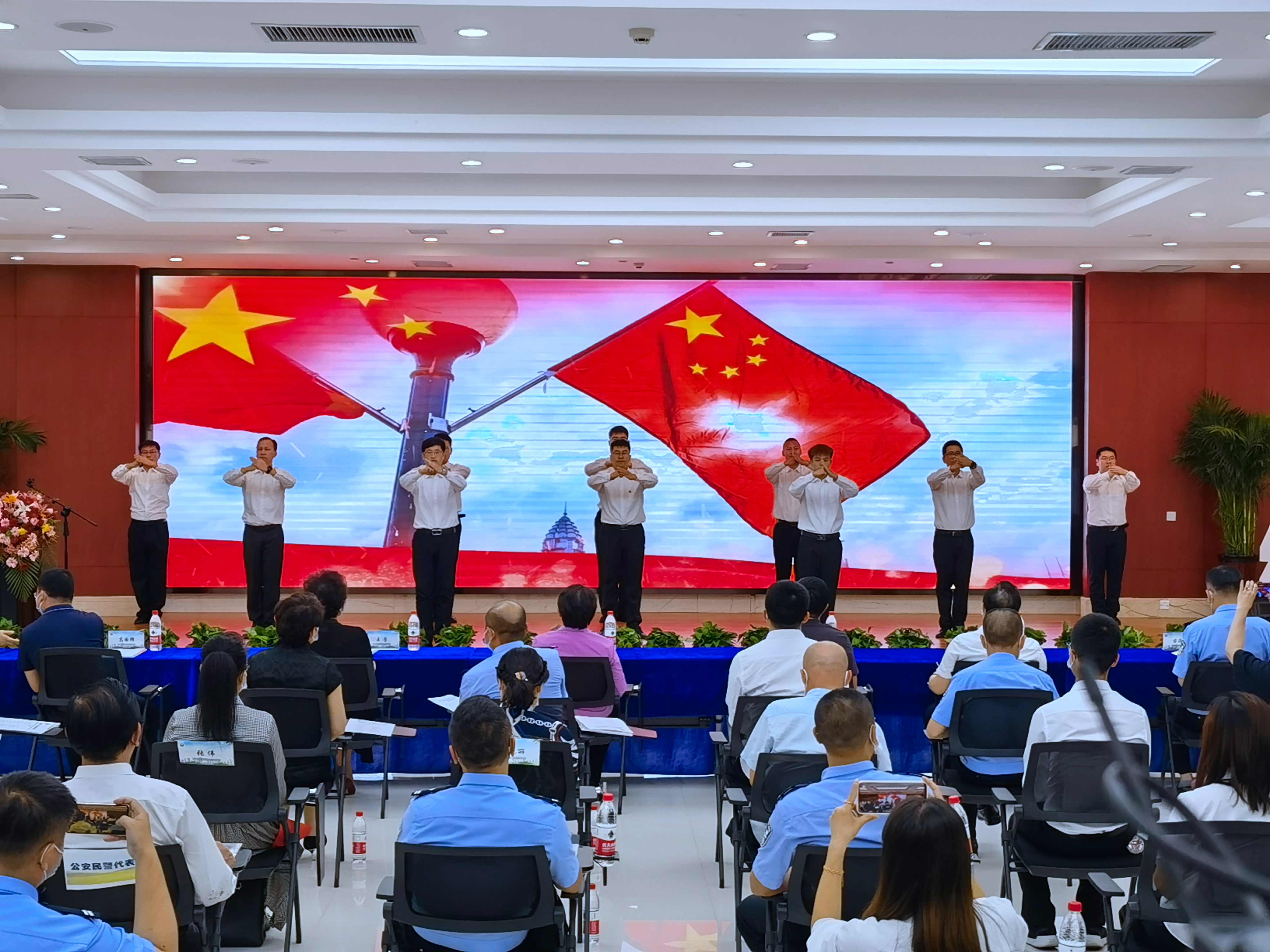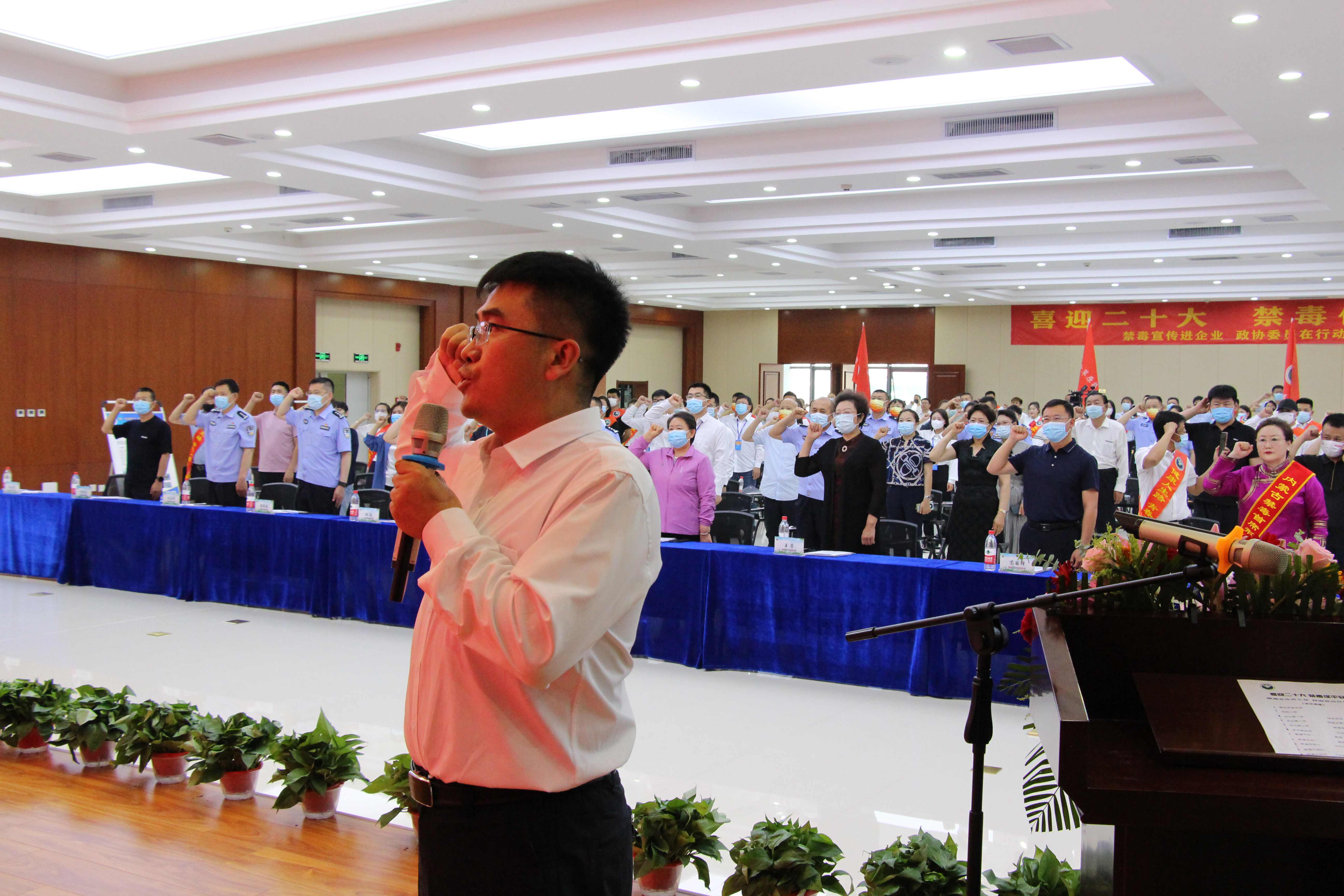 全體與會(huì)代表及公司員工在楊金光董事長(zhǎng)的領(lǐng)誓下進(jìn)行莊嚴(yán)的禁毒宣誓。