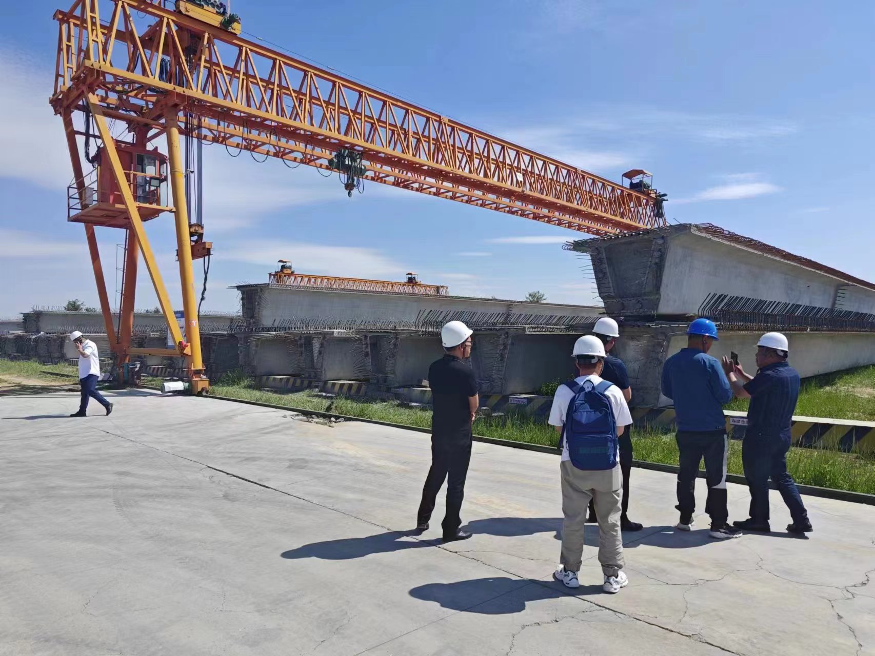 在智慧梁場內(nèi),張總向大家介紹了內(nèi)蒙古路橋集團的發(fā)展歷程,并帶大家實地觀摩了制梁工藝、鋼筋加工過程、現(xiàn)場智慧勞務(wù)以及智慧安全的應(yīng)用情況,在物料驗收區(qū),張總還向大家介紹了項目上使用的廣聯(lián)達智慧物料驗收系統(tǒng)和現(xiàn)場的地磅、攝像頭等硬件進行聯(lián)動,對項目進出場物料進行管控的操作過程。